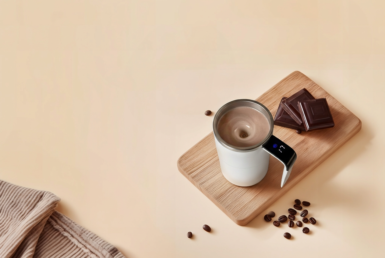 The mug features a built-in magnetic stirrer that activates at the touch of a button, effortlessly blending your drinks without the need for a spoon. That means no more clumps or mess—just smooth, perfectly mixed beverages every time!